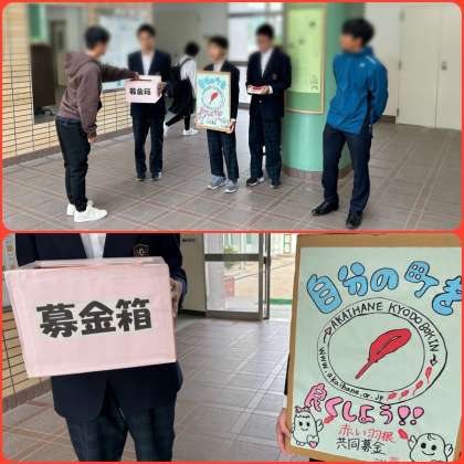 11/6から11/8の3日間、登校の時間帯に生徒会役員のみんなが玄関で募金活動を行いました。