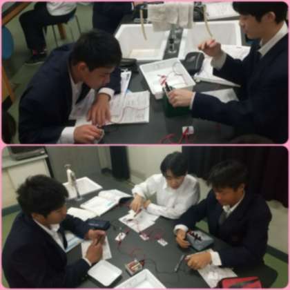 直列回路と並列回路に流れる電流を測定する実験をしました。