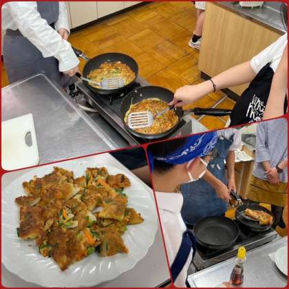 みんなでチヂミ作りを楽しみました。 デザートも作って、おいしくいただきました!