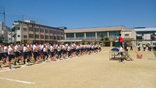 大宮中学校では体育授業をはじめ、すべての教育活動で規律正しい、集団行動を重視しています。
