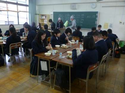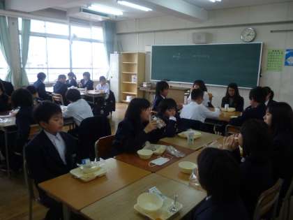 ちなみに給食の量は、小学校の高学年の1.2倍あります。食器が小学校と同じなので、献立によってはおかわりをしないと全部のせることは難しいかもしれません。