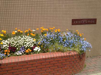 正門前の花壇の花が満開です。昨年度末に学校元気アップ支援員の山口先生に植えていただいた草花が咲き誇っています。学校を訪れた時にご覧いただけますので、ぜひどうぞ。