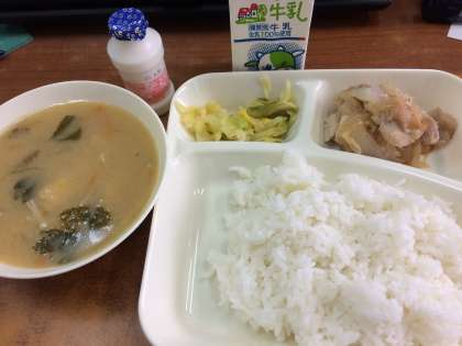 給食のみそ汁は、家庭のみそ汁と比べると、具材が豊富です。