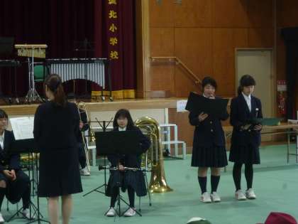 そして午後には城北小学校にて「つながりまつり」が開催され、本校の吹奏楽部がオープニング演奏をおこないました。