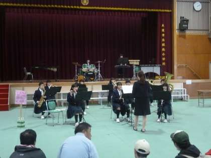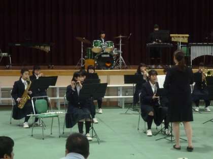 少数精鋭の吹奏楽部。美しい演奏を聞かせてくれました。昨日入部したばかりの1年生も、早く先輩と一緒に演奏ができるようになってくださいね!
