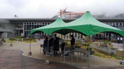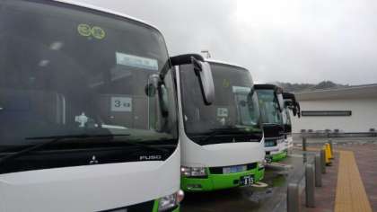 霧雨のなか予定より少し早く清水PAに到着し、昼食はバスの中でとりました。
