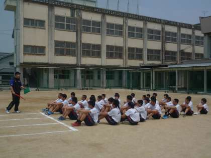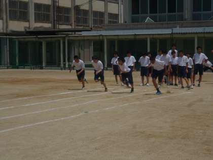 4時間目、2年2・3組の男子が50m走に取り組んでいました。