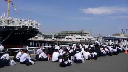 横浜班別活動は全ての班が、時間を守って最終チェックポイントの山下公園氷川丸前に到着しました。
