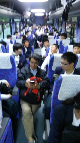 新大阪駅から学校に向かうバスもほぼ予定通り。全員元気です。