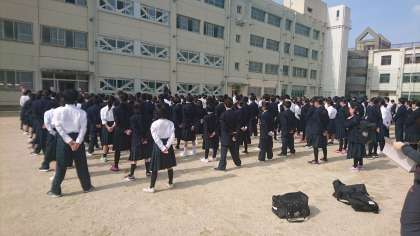 ほとんどの生徒が鞄を教室に置いて、キレイに整列できています。