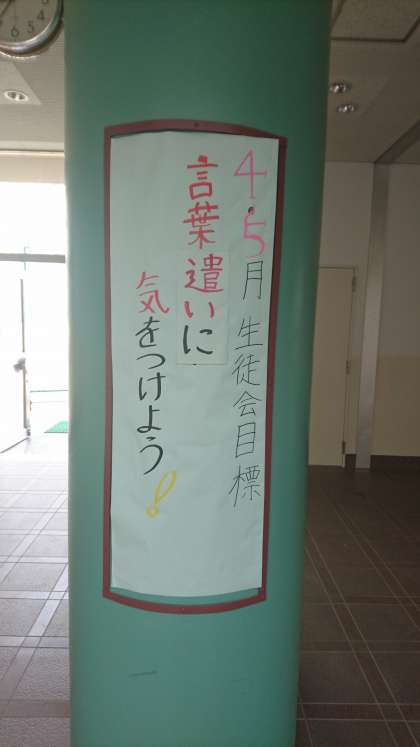 生徒会目標にある「言葉遣いに気をつけよう」残り半月できるように意識していきましょう。
