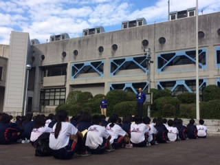 野外炊飯場から歩いて移動し、宿泊する施設に着きました。