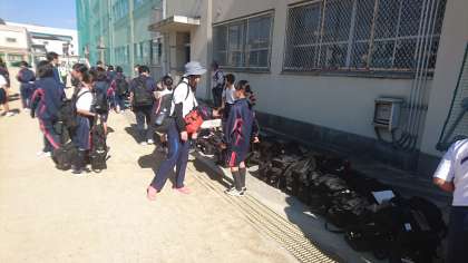 明日19日(金)1年生は、9時35分〜9時45分の間に登校してください。