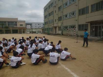 上の写真は体育の授業です。1年生が体育大会の種目練習をしていました。