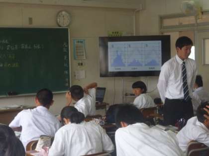 下の写真は社会の授業です。2年生が九州地方の気候について学習していました。