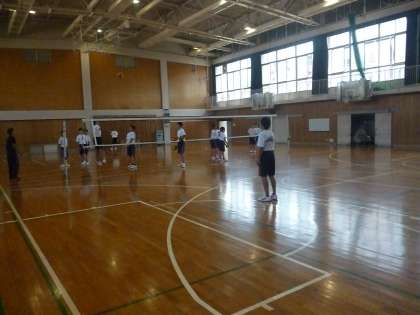 バレーボールのサーブとスパイクの練習を行い、実戦に近い形の練習をしました。