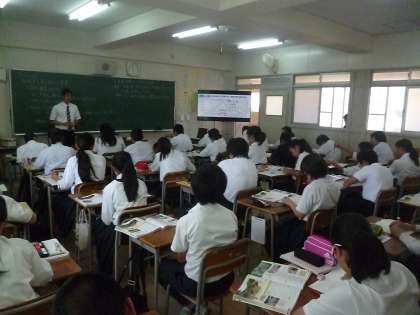 八木先生は3時間目、2年3組で社会科の授業をしました。