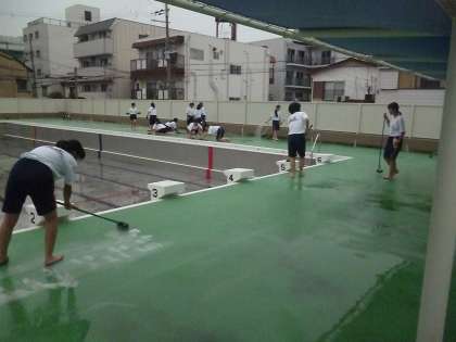 放課後、バレーボール部の生徒が清掃に汗を流してくれました。