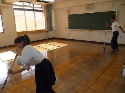 学活終了後、教室のワックスかけをしました。