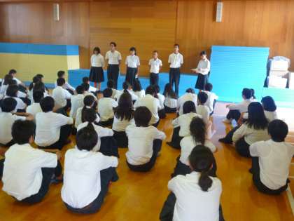 委員長会から各クラスへ一言、健康面、学習面、生活面など、様々な話をしていただきました。