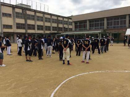 写真は開会式の様子です。幸い、くもり空で助かりました。