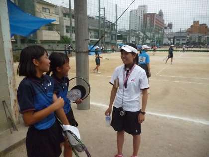 ソフトテニス部の顧問をしており、母校に生徒を引率してやってきました。