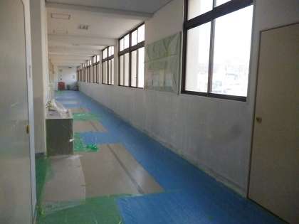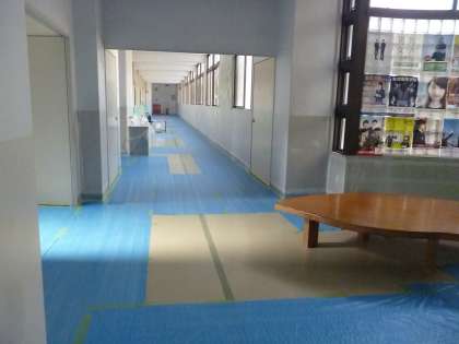 昨日から、校園営繕園芸事務所にご協力いただき、校内の壁の塗装作業を行っています。