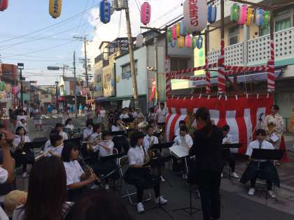 開会前に激しい夕立が降り、演奏できるのか心配されましたが、雨もやみ、たくさんの地域の皆さまの前で演奏することができました。