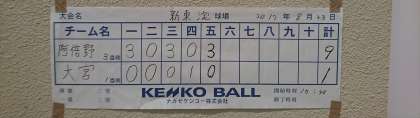 阿倍野中学校相手に1対9(五回コールド)で敗戦となりました。
