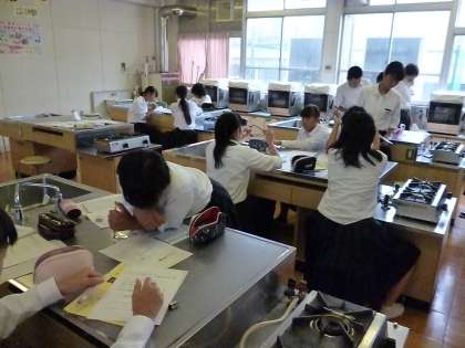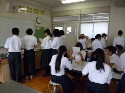調理室では幼稚園・保育所に行く生徒が集まっていました。