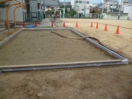 中に入れる砂がまだ納品されていませんので、完成にはまだ時間がかかります。