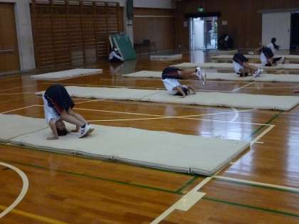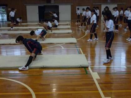 次の授業ではタブレットを用いて、自分の技の出来具合を振り返りながら、さらに練習を重ねます。