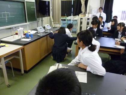 数人の生徒が実際に力の伝わり方を体感し、それに基づいて授業が進みました。