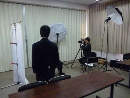 3年生は「田島写真」さんのカメラマンの方にお越しいただき、卒業アルバムや進路用の個人写真の撮影を行いました。