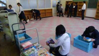 下の2枚の写真は、整備中の第2図書館の様子です。先週の専門委員会で、文化委員会の生徒が作業を進めてくれました。本も配架され、もうすぐオープンです!