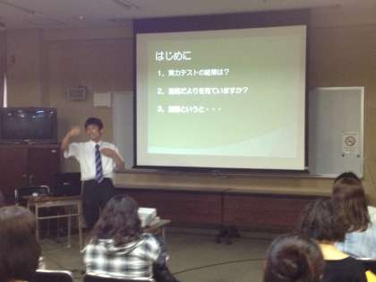 6月20日午後2時より本校多目的室Aにて第1回進路説明会を実施しましたところ、雨の中、多くの保護者の皆さまに来校いただき、誠にありがとうございました。