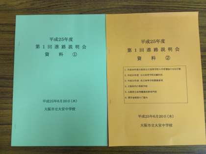 本日お配りしました進路説明会資料1(グリーンの冊子)資料2(オレンジの冊子)をご家庭でお子様としっかりご覧ください。