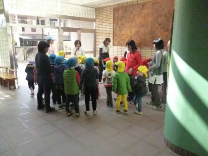 大宮第一保育所の幼児の皆さんが、津波を想定した避難訓練で、来校しました。