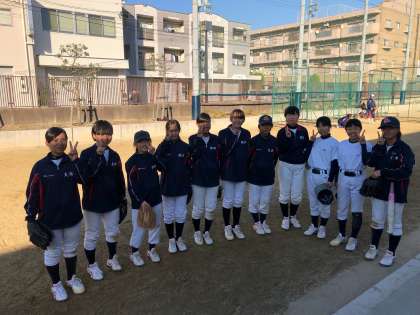 1試合目は東陽中学校、2試合目は放出中学校に惜敗。しかし3試合目は1年生がサヨナラヒットを放つ活躍をみせ、茨田中学校に勝利することができました。