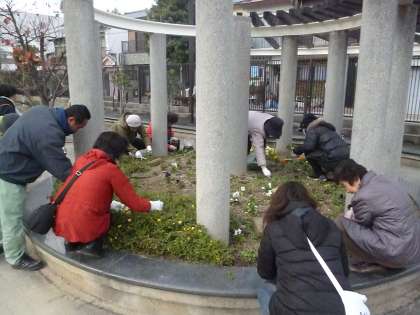 風が強く、とても寒い中、元気アップのボランティアの皆さんが、花壇の草ぬき等の作業をしてくださいました。ありがとうございます!