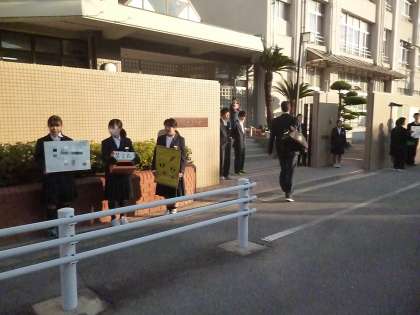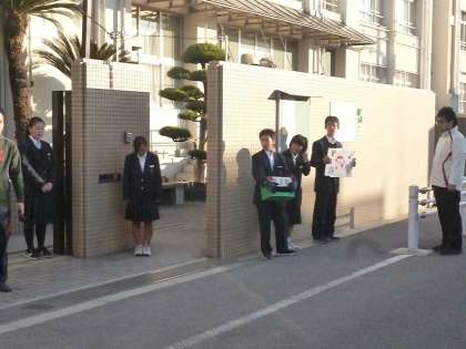 今週は毎朝、生徒会が正門で募金活動をしています。