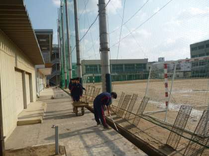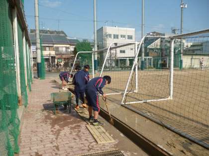 始業式の後、サッカー部がグランドの側溝を清掃してくれていました。