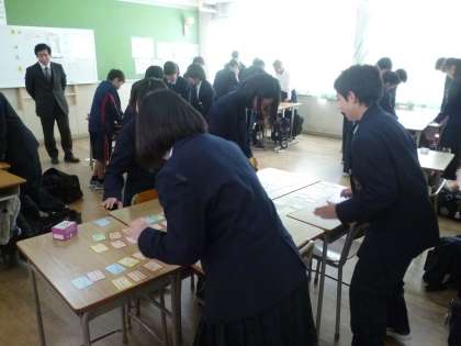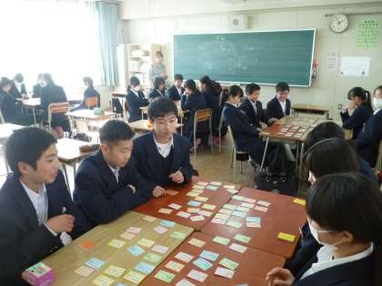 1年生のテストは国・数・英の3教科で終わりでしたので、午後からは各学級で、来週19日に行われる百人一首大会に向けた練習を行いました。