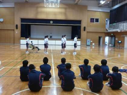 また、4時間目には2年1組の男子体育の授業の中で、特別支援学級に所属する生徒の授業の様子を見学してもらいました。