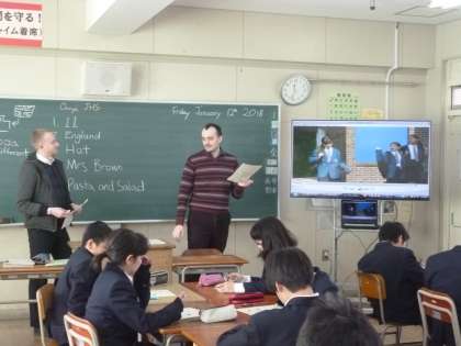 今日の1年生の英語の授業には、C−NETが2人はいりました。