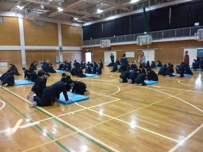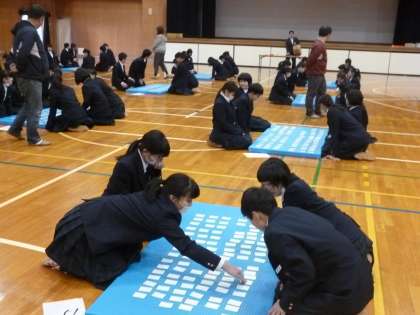 1年生は5・6時間目、体育館で百人一首大会を行いました。
