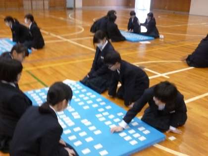 上の句をしっかりと聞き、あっという間にとり札に手を伸ばす生徒がたくさんいました。