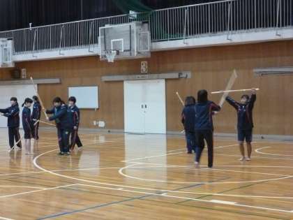 寒さにも負けず、靴下を脱いで、声を出して授業を受けています!