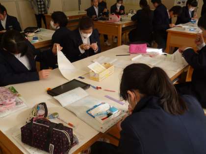 2時間目は家庭科です。被服室で「まつりぬい」の実習です。