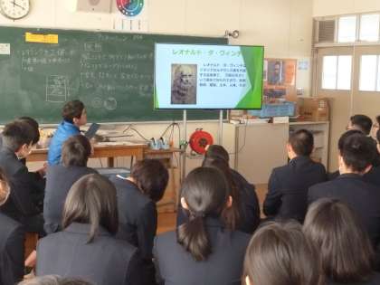 モニターにさまざまな資料を映しながら、時代ごとに作品の描写技術が違うことを学びました。